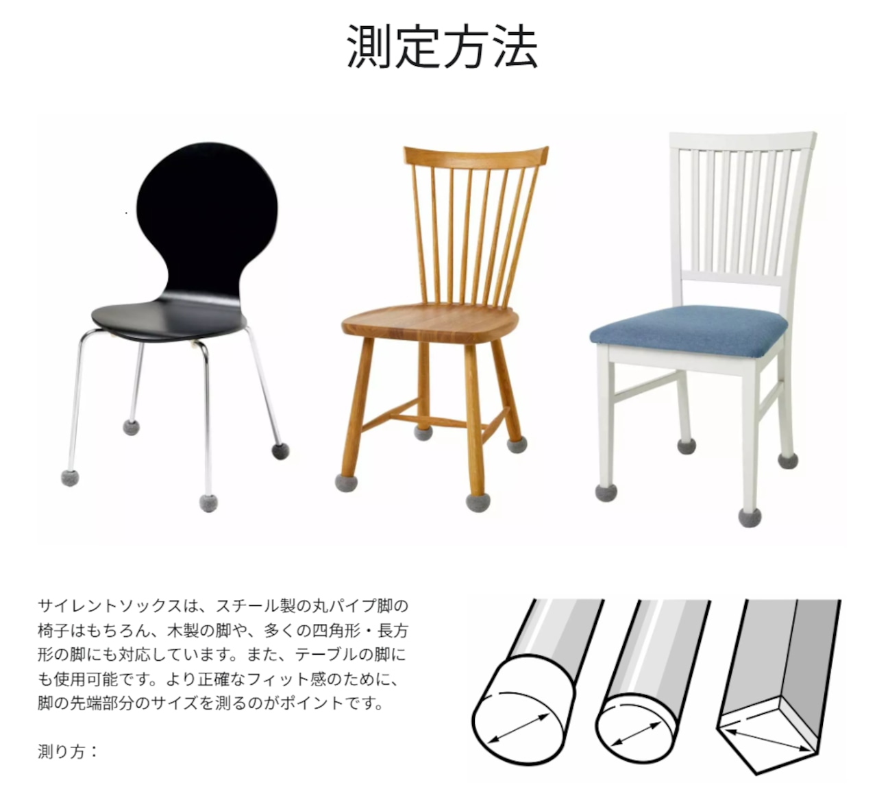 お手持ちの椅子の脚の直径(底面)を測ってください。