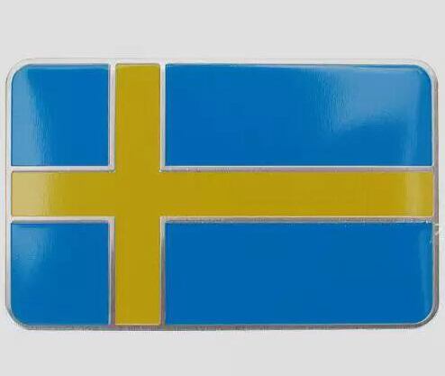 高級感いっぱいのアルミ製、スウェーデンの国旗エンブレムです。